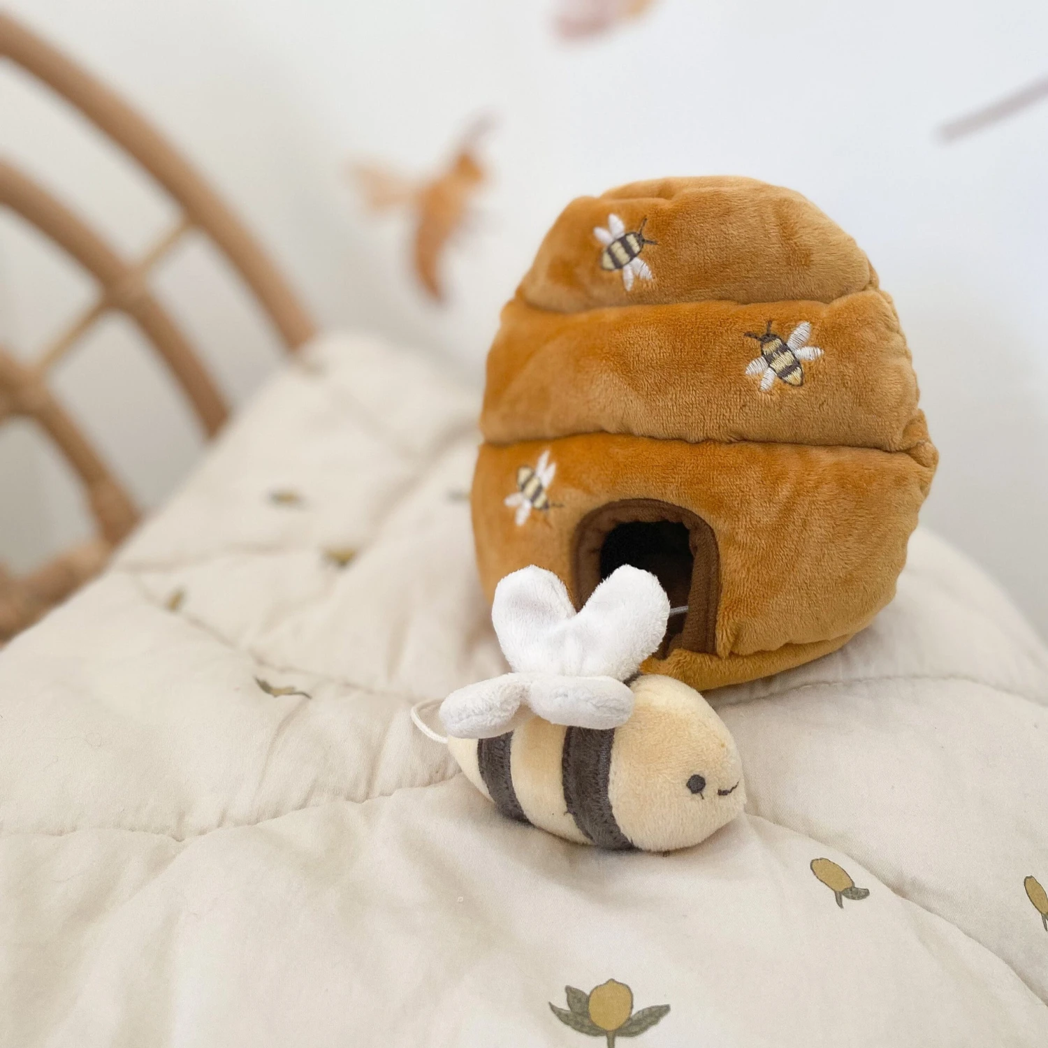 Bee Hive Activity Toy is as sweet as honey! Our baby activity toy in soft plush stimulates a child’s developing senses and makes playtime extra fun.