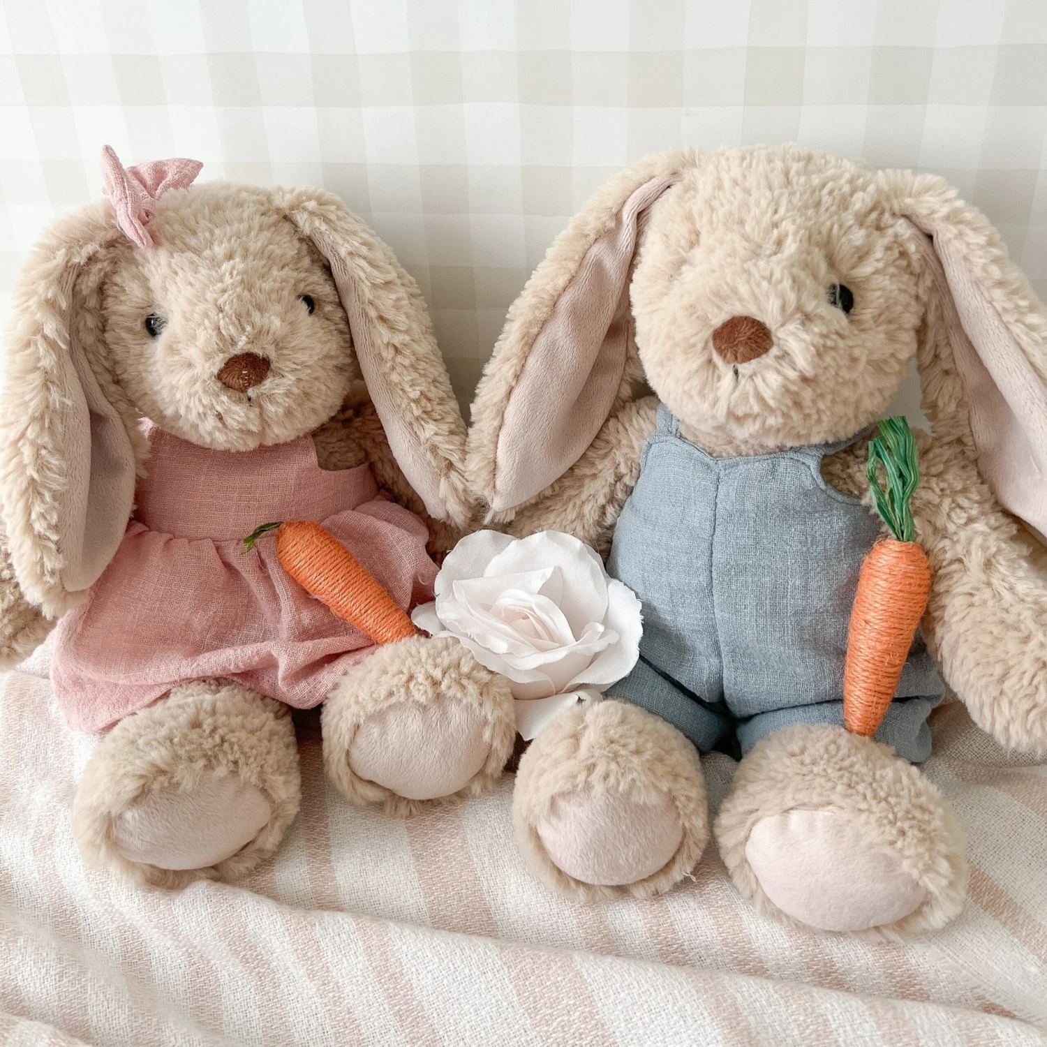 Meet Bramble Bunny, the cuddliest little adventurer! Dressed in his cozy blue overalls, he’s all set for endless fun and mischief. With his velour-lined floppy ears and an irresistibly huggable charm, Bramble Bunny is eager to be your little one’s best buddy. This cuddly bunny is always ready to hop into new adventures, he’s the perfect sidekick for wild escapades, endless snuggles, and a delightful addition to any Easter basket!