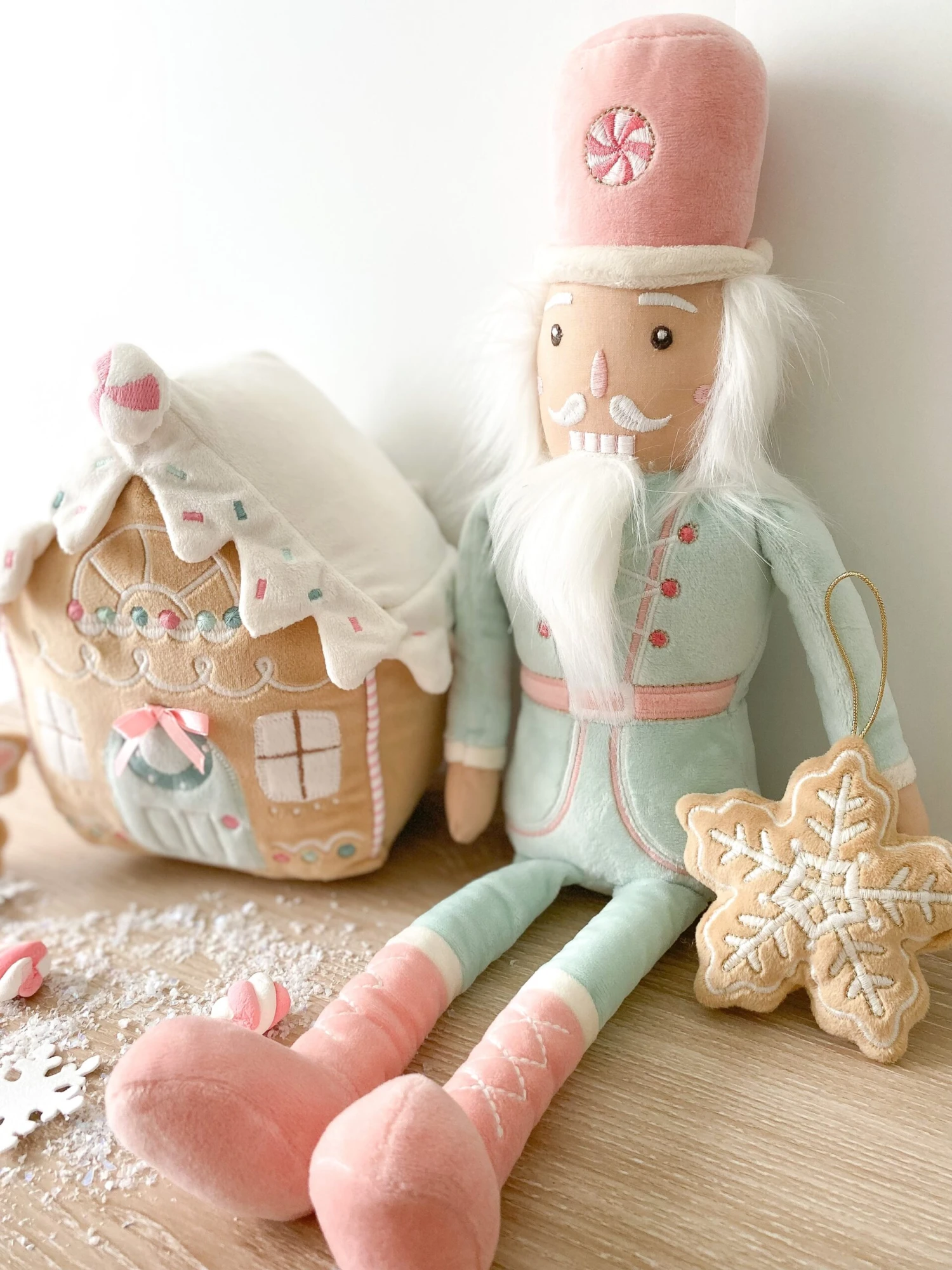 It’s that time of year and Candy Nutcracker Doll is the perfect accent to any home at the holidays. Adorned is best selling rose pink and minty green, Candy Nutcracker is perfect for shelves and mantles. Introduce a young mind to the beloved fairy ballet set at the foot of a Christmas tree with Mon Ami’s Candy Nutcracker Plush Doll. Our Christmas plush doll will spark hours of play and nights of sweet dreaming in the countdown to Christmas. Although traditional nutcrackers are wooden and sturdy, our Nutcracker plush doll is a total softie with his plush body, silky white beard and pastel uniform complete with a peppermint-adorned top hat.