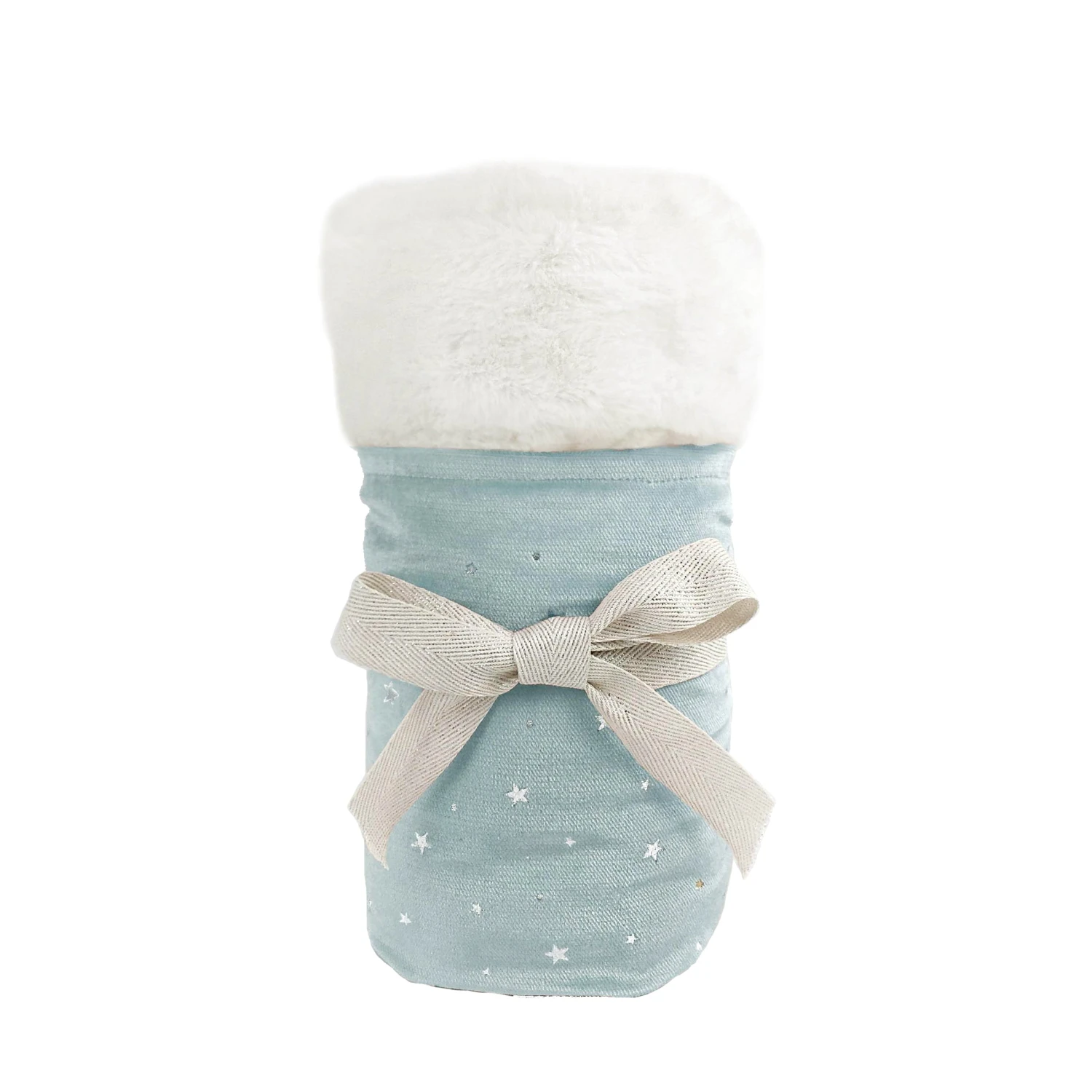 MON AMI Celestial velvet and faux fur blankets are heavenly. Backed with our signature lush fabric, the softness is unmatched. Exterior is velvet printed with a foil stars, this blanket is perfect all year round.