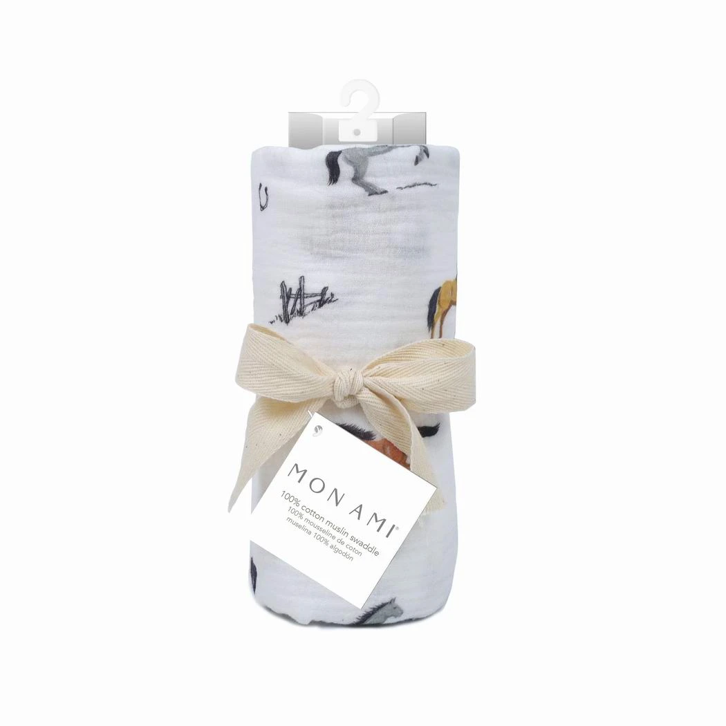 Generously sized premium cotton muslin blanket ideal for swaddling, sunshield, tummy time, privacy throw and more