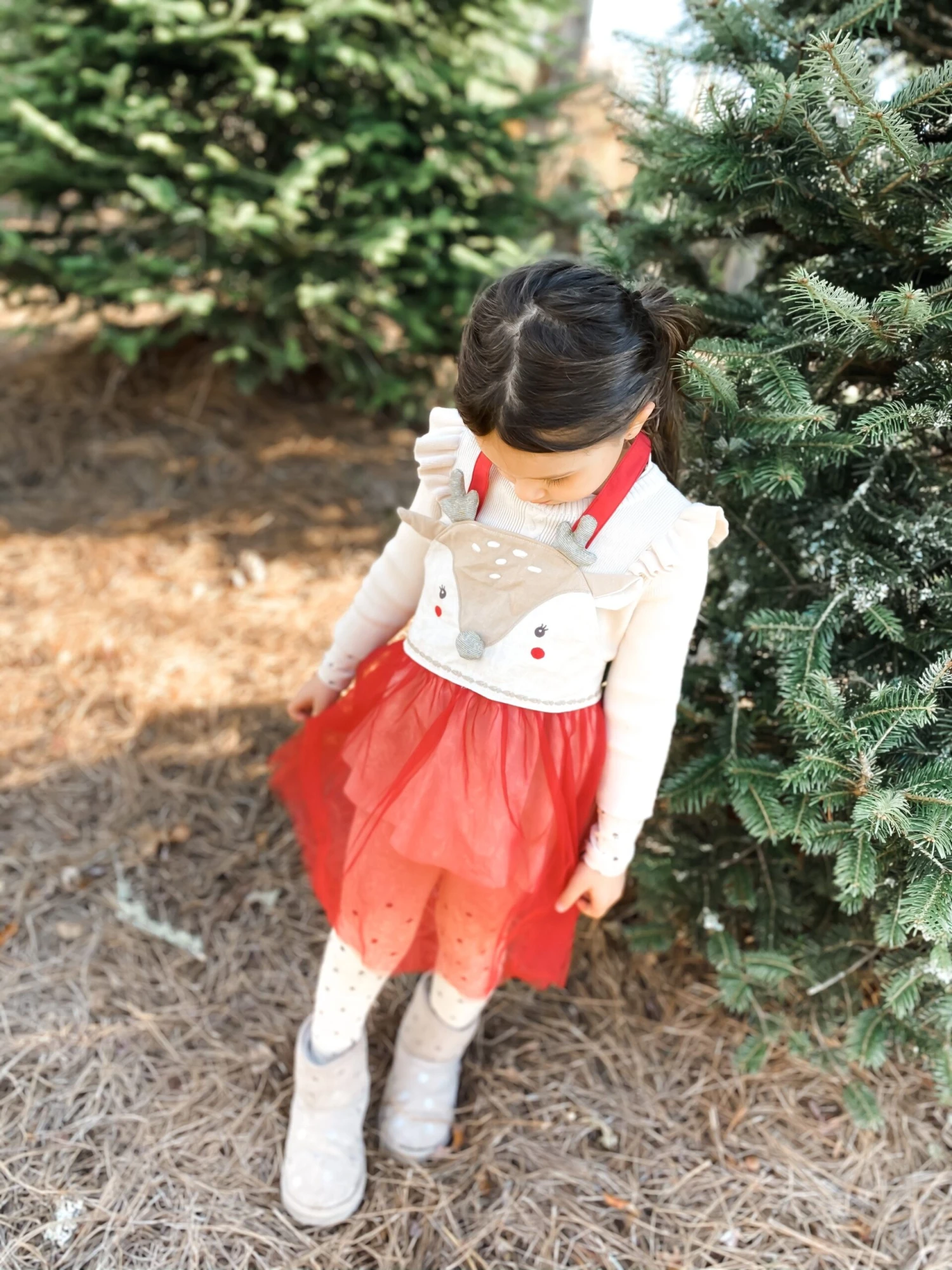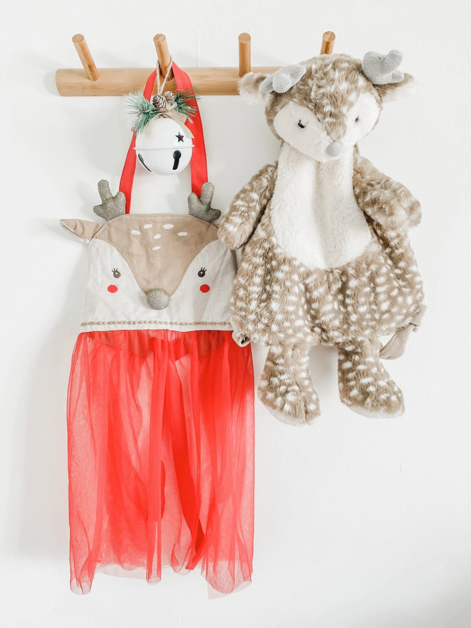 This is no ordinary apron! Made of linen and organza, this bunny apron has linen ties and with velcro closure and ties around the waist. Beautiful for?? Christmas tea time, and play, the organza skirt makes this fit for a holiday princess!