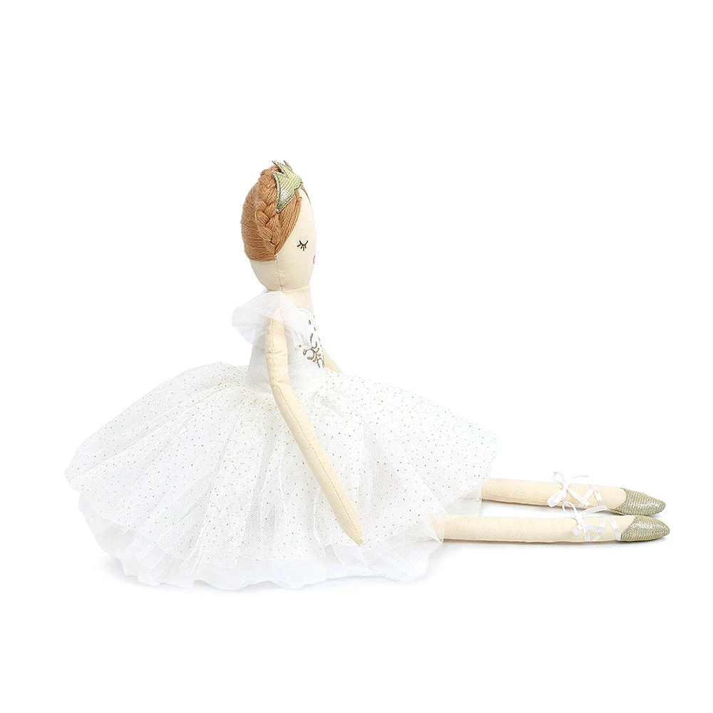 A vision in white. Natalia Prima Ballerina Doll shows off her principal dancer status in an ethereal tulle tutu sprinkled with sparkle and paired with matching lace-up slippers. From her beautifully embroidered face to the silver tiara perched in her braided ballerina bun, no detail has been overlooked in Mon Ami’s latest ballerina soft doll. Any pint-sized performer will be instantly won over by this showstopping ballerina doll, ready to make dreams come true whether playing dress-up at home or attending an actual ballet.