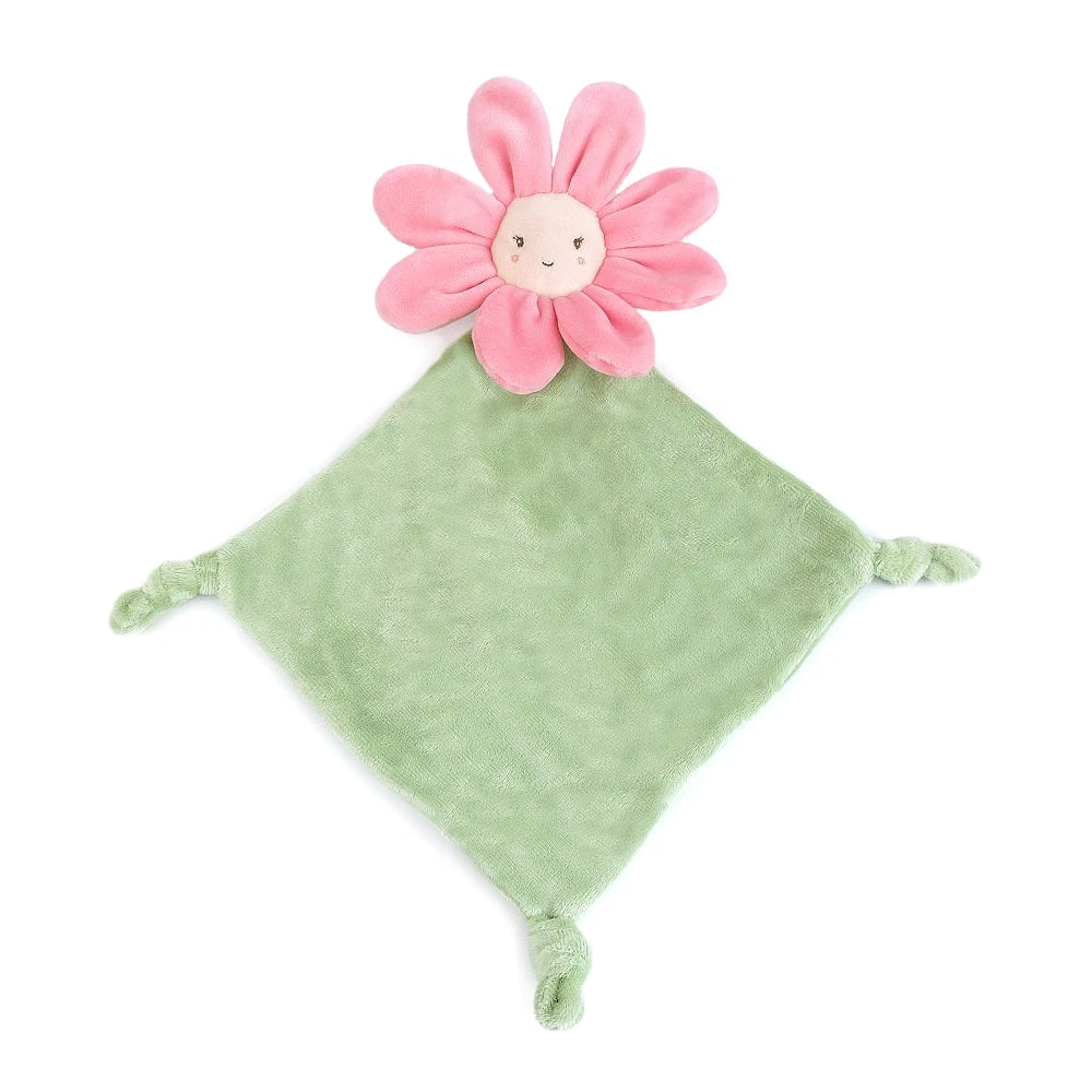 Petunia Flower Knotted Security Blanket-A Blooming Buddy! Wrap your little one in comfort and joy with our super soft velour Petunia Flower Knotted Security Blanket! This colorful and festive lovie is more than just a blanket, it’s a cheerful friend with a plush Petunia flower attached at one corner, perfect for snuggles. The other three corners feature knotted fabric, offering a soothing tactile experience that helps babies self-soothe during naps or bedtime. Durable and machine washable, this whimsical blanket is made to handle all the cuddles, making it an unforgettable gift for baby showers or newborn celebrations. With its combination of softness and sensory fun, it’s sure to become your little one’s favorite snuggle companion!