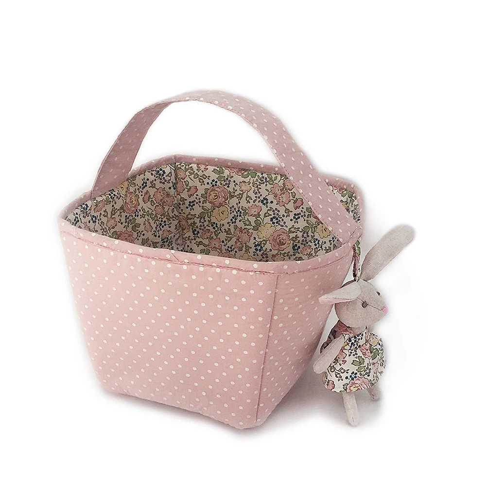 Storage made pretty….our little basket is perfect for gifting as well as storing nursery essentials, small toys, or attach our matching French Bunny Ornament for a unique Easter Basket! With pretty blush pink polka dot, and our signature French Floral, liner, this caddy coordinates with our nursery collection. Perfect for monogramming.