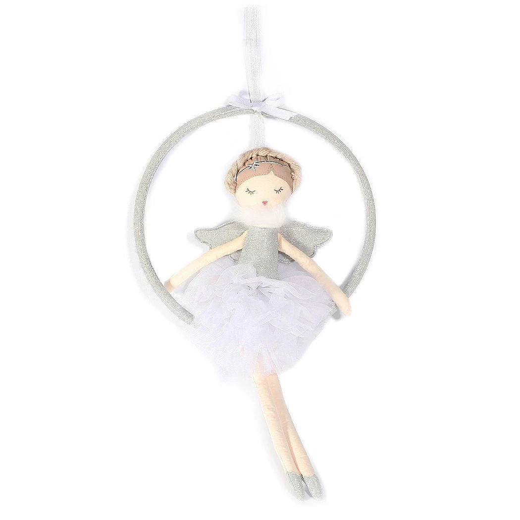 A beautiful plush doll, perched??on a beautiful?? circle swing, and tied with a pretty bow! Our mobiles are perfect for hanging on the wall, ceilings or window.??